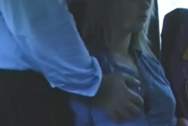 Помял блондинке сиськи в автобусе, пока её парень смотрел в окно
